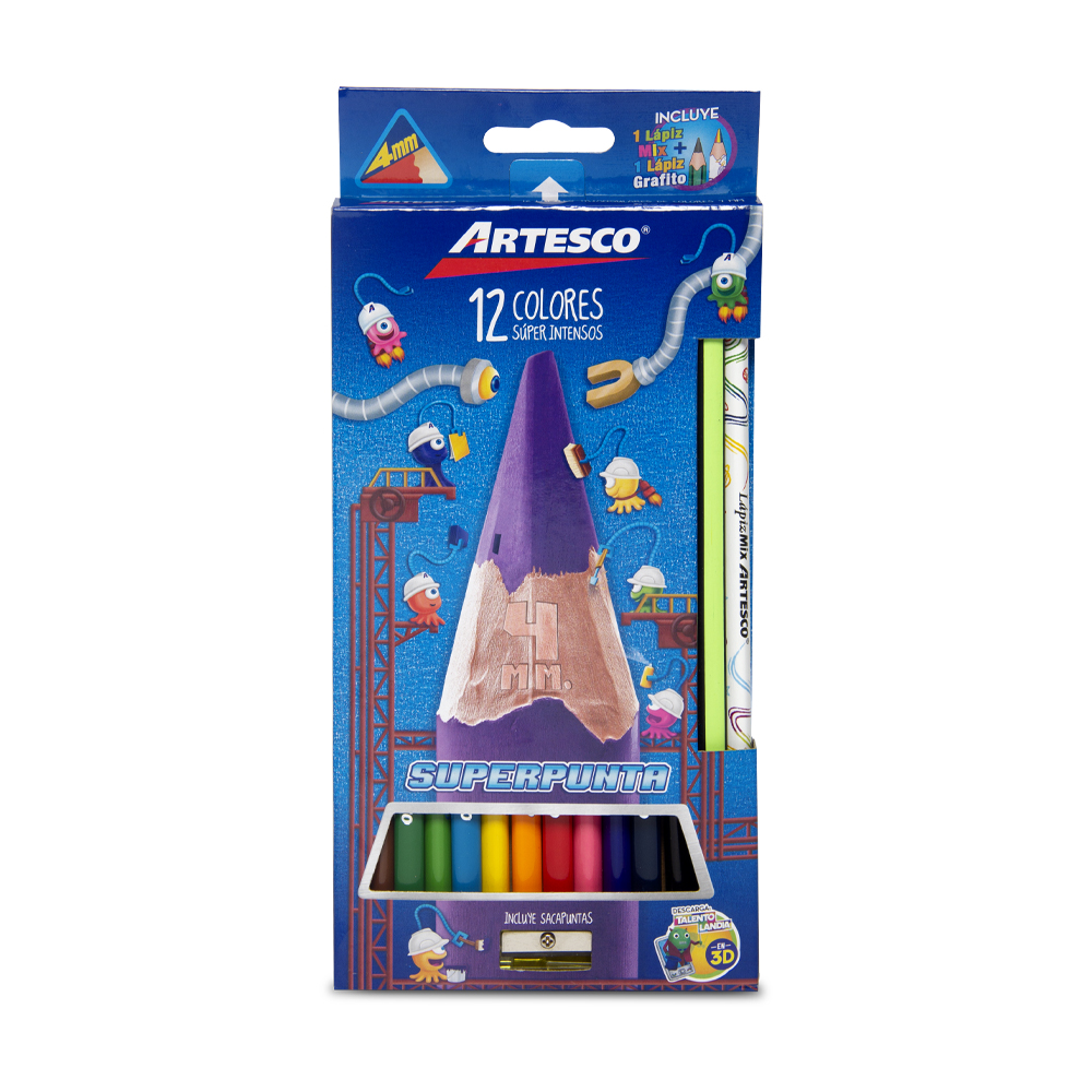 Colores Superpunta 4MM x12 + lápices + sacapuntas