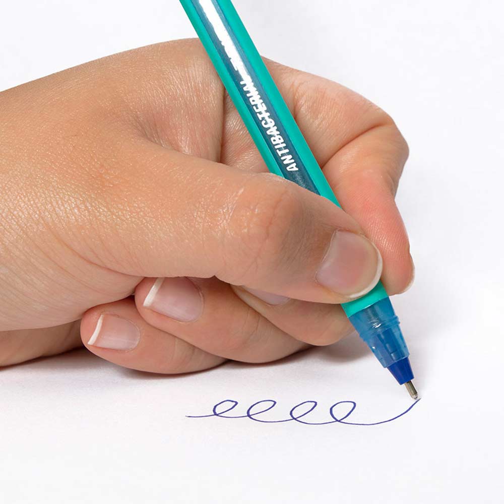 - Bolígrafo antibacterial, tratado con tecnología Nano Silver que inhibe el crecimiento bacteriano sobre el cuerpo y tapa del producto.