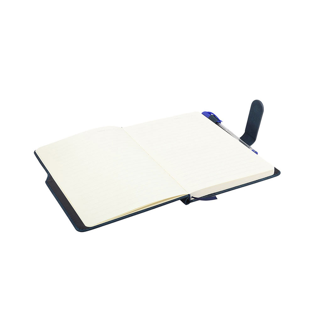 Libreta con seguro imantado y hojas rayadas de 80 gr. Material con acabado tipo cuerina. Incluye lapicero Trimax GL32 de regalo.